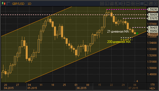 Поддержка 1: $1.5526 – нижняя граница восходящего канала на дневном графике