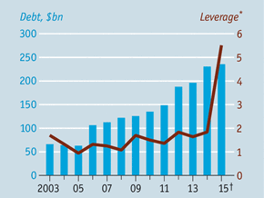 *Соотношение долга и потока денежных средств в годовом исчислении до капвложений и без учета продажи производных инструментов. Источник: Bloomberg, The Economist