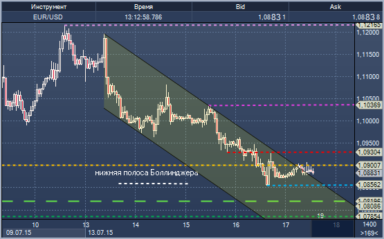 Поддержка 1: $1.0856/60 - минимум 16 июля, нижняя граница дневного канала Боллинджера