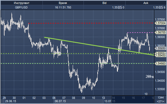 Поддержка 2: $1.5555 - поддержка на часовом графике 16 июля