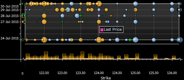 | Как пользоваться графической информацией, представленной ниже? На графиках в виде кругов, размер которых зависит от объема, представлены страйки опционов (по оси Х), сроком истечения которых наступает в указанную дату (ось Y). В целях наглядности графически обозначены лишь те опционные контракты, объем которых выше 20 млн. Голубой цвет — Call. Зеленый цвет — Put. Желтый цвет — Mixed C/P. Источник данных: Депозитарная Трастовая и Клиринговая Корпорация (DTCC). Просьба свои замечания и пожелания относительно формата и содержания предоставляемой на сайте аналитической информации направлять по адресу: analytics@forexpf.ru |