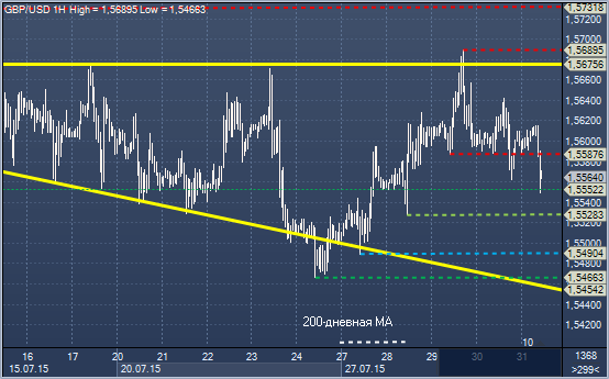 Поддержка 1: $1.5552 — область консолидации на часовом графике 27 июля