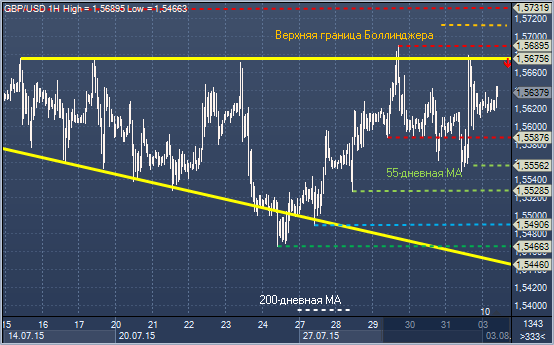 Сопротивление 2: $1.5713 — верхняя полоса Боллинджера