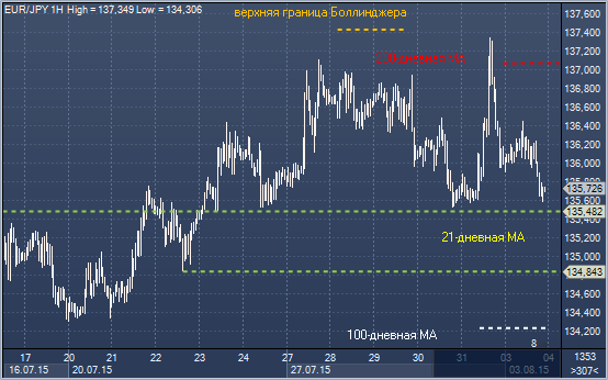 Поддержка 2: Y135.48 - часовая поддержка 23 июля