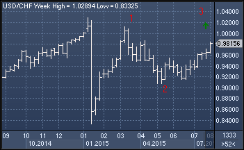 По нашему мнению, доллар/франк находится в третьей импульсной волне роста (прим. ProFinance.ru: предположительно, началась в конце июня), развивающейся в рамках еще более крупной третьей импульсной волны роста (предположительно, началась после обвала 15 января). Бычий моментум остается сильным, и пара имеет все шансы преодолеть февральский максимум chf1.0129. Покупайте на спадах к chf0.9600. Источник: ProFinance.Ru - Новости рынка Forex