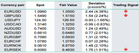 Валютные стратеги BNP Paribas обновили свою еженедельную оценку ситуации на валютном рынке, в подготовке которой используется квантовая модель «STEER», довольно успешно зарекомендовавшая себя с точки зрения точности своих прогнозов. Напомним, что данный банк является пионером использования данного подхода к оценке «справедливости» текущих валютных курсов. Основу данной методики представляет взаимосвязь между процентными ставками, стоимостью акций и цен на сырьевые товары. Ниже приведена таблица с указанием валютной пары, ее текущего курса, «справедливой» цены, дельты между двумя предыдущими параметрами и сигналом на покупку/продажу.