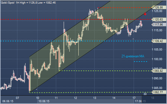 Сопротивление 1: $1120,6 - часовая поддержка 13 августа, в настоящее время - сопротивление