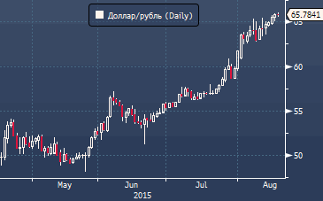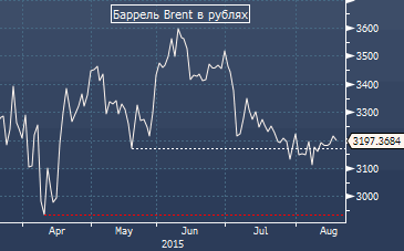 Стоимость барреля нефти Brent, выраженная в единицах российской валюты, составляет в настоящий момент 3195 рублей и это совсем не та цена, которую хотел бы видеть российский бюджет в августовский налоговый период, который начался в понедельник. Пик выплат традиционно приходится на 25 число месяца. В горизонте оставшихся дней текущей недели намного более вероятно увидеть курс доллар/рубль в районе 67.00, нежели возвращение котировок к отметке 65.00, учитывая сохраняющийся устойчивый спрос, не только на подходе к этой фигуре, но и уже на 65.50. Источник: ProFinance.Ru - Новости рынка Forex
