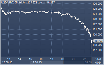 Причиной для паники стали опасения инвесторов по-поводу замедления китайской экономики. Участники рынка начали сначала потихоньку, а сегодня — агрессивно, избавляются от рискованных активов и покупать валюты, в которых они брали кредиты — евро и иену. Австралийский доллар упал до шестилетнего минимума, а многие валюты развивающихся рынков снижаются на опасениях об оттоке зарубежного капитала после того, как китайские акции потеряли более 8 %. "Рынки в панике. Ситуация начинает напоминать азиатский финансовый кризис в конце 1990-х годов, - говорит Такако Масаи из Shinsei Bank. - Спекулянты продают активы, которые кажутся наиболее уязвимыми". Страхи жесткой посадки китайской экономики и, как следствие, пересмотр прогнозов роста мировой экономики, вызвали перебалансировку портфелей многих фондов. Кто успел, отхватил уровни получше, кто не успел — дождались звонка своего брокера (маржин-колл).
