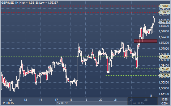 Поддержка 2: $1.5670 — область консолидации на часовом графике 21-24 августа