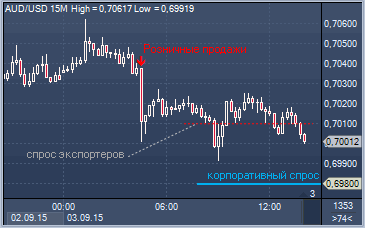 После разочаровывающих данных по розничным продажам австралийский доллар подешевел к американскому конкуренту, но затем «притих», ожидания результат заседания ЕЦБ и пресс-коференцию Марио Драги. На уровне 0.7010 ранее присутствовали приказы на покупку со стороны экспортеров. Объем был небольшой, поэтому эти биды были без труда поглощены. Однако на данный момент более значимый спрос со стороны корпоративных счетов базируется на 0.6980.