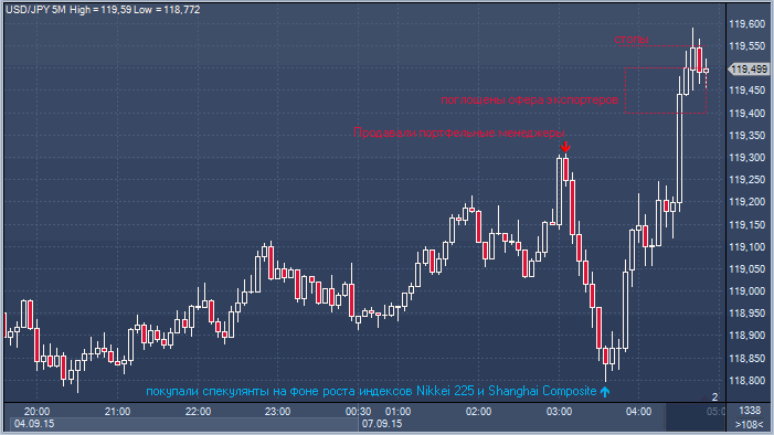На ранних азиатских торгах курс доллар/иена предпринял попытку возобновить нисходящую динамику. Портфельные менеджеры продавали американскую валюту против иены от 119.30 — чуть ниже приказов на продажу японских экспортеров, которые базировались в области 119.40 — 119.50. Однако открытие фондовых площадок в Токио отразило позитивные настроения инвесторов. Индекс Nikkei подрос на 0.9%. В Китае акции также в зеленой зоне. Индекс Shanghai Composite на открытии подрос на 1.8%, а сейчас показывает рост на 0.94%. Спекулянты, торгующие с плечом, выступили активными покупателями в доллар/иене. Офера экспортеров были поглощены, а также реализована серия стопов выше уровня 119.50. Источник: ProFinance.Ru - Новости рынка Forex