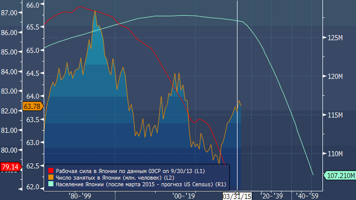 В то время как денежные потоки пока остаются негативным для иены фактором, в Morgan Stanley советуют задуматься о долгосрочных перспективах. Валютный стратег Morgan Stanley Иэн Стэннард обращает внимание на то, что число населения пенсионного возраста в Японии растет, что предполагает перспективы роста активности по репатриации капитала. Между тем, население трудоспособного возраста сокращается (прим. forexpf.ru: по данным на февраль 2015 оно достигло отметки 77.214 млн.), и Стэннард предупреждает, что в предстоящие годы демографические изменения повлекут за собой значимые изменения в потоках капитала.
