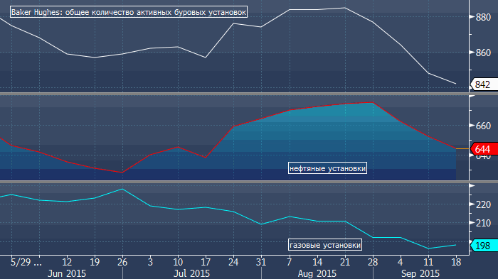 В качестве первоначальной реакции нефть отреагировала незначительным ростом на опубликованные еженедельные данные нефтегазовой сервисной компании Baker Hughes по количеству активных буровых установок. За прошедшую неделю (до 18 сентября):