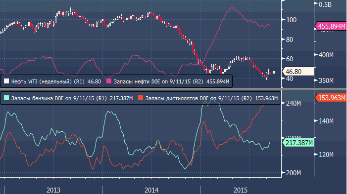 Запасы сырой нефти в США - в стране, которая является крупнейшим потребителем этого энергоресурса в мире - сокращаются шесть недель подряд. Об этом на прошлой неделе сообщило Управление по энергетической информации в США. Несмотря на нисходящий тренд, объем запасов все равно превышает пятилетнее среднее значение на 100 млн. баррелей. «Запасы наконец-то начали сокращаться», - радуется Амрита Сен, старший аналитик по рынку нефти из Energy Aspects. «Мы сохраняем свой прогноз по сокращению запасов в ноябре и декабре». Источник: ProFinance.Ru - Новости рынка Forex
