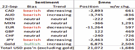Как следует из последних данных CFTC, спекулянты довольно невнятно отреагировали на решение FOMC сохранить ставки неизменными, но, в целом, за неделю до 22 сентября объем чистой длинной спекулятивной позиции по доллару продолжил снижаться и достиг минимального значения за прошедший год. Крупнейший чистый шорт все также наблюдается в евро, однако резкие движения евро/доллара после заседания FOMC поумерили пыл трейдеров, желавших сыграть на новостях, и в результате объем чистой позиции претерпел лишь незначительные изменения. Более серьезное (в процентах) сокращение спекулятивных шортов было отмечено в иене, что объясняется явным падением интереса к риску. Немного странным (так как эта валюта исторически рассматривается в качестве защитного актива) оказалось поведение спекулянтов во франке, где небольшой чистый лонг превратился в небольшой чистый шорт. Что касается товарных валют, то здесь спекулянты нарастили чистый шорт по аусси и сократили его объем по луни, решив, видимо, что проблемы Китая имеют более прямое отношение к Австралии, чем опосредованное через цены на нефть к Канаде. Источник: ProFinance.Ru - Новости рынка Forex