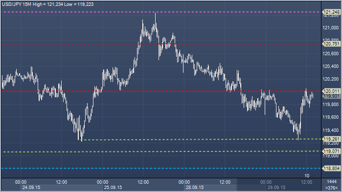 Сопротивление 1: Y119.26 - минимумы 24 и 28 сентября