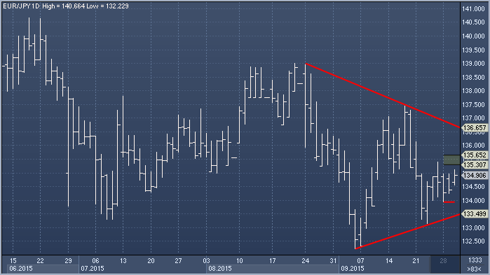Евро/иена: консолидируется в дневном треугольнике. Область Y134.00-30 продолжает привлекать покупателей и перед возобновлением среднесрочного даунтренда возможен рост в область Y136.30-65. Ключевая поддержка – Y133.95;