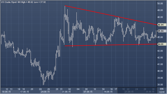Как следовало из опубликованных вчера данных API по запасам нефти в США, за неделю до 25 сентября они выросли на внушительные 4.6 млн баррелей. Сегодня эта информация получила подтверждении от DOE (+3.955 млн баррелей), и котировки WTI, росшие большую часть среды, рухнули примерно на $1 после чего на рынке появились покупатели, вернувшие WTI в область максимумов дня. В целом, черное золото остается в многодневном консолидационном нисходящем треугольнике. Источник: ProFinance.Ru - Новости рынка Forex