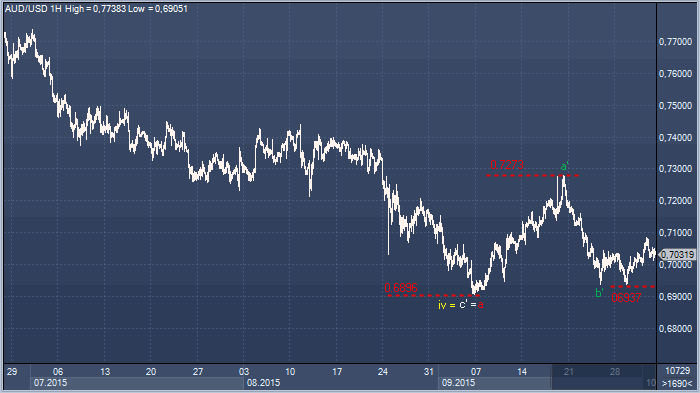 На этой неделе технические аналитики Morgan Stanley для волнового анализа выбрали курс аусси/доллар (на прошлой неделе проводился волновой анализ пары доллар/канада), где банк в среднесрочной перспективе сохраняет медвежий взгляд, однако не исключает, что в краткосрочном горизонте тактические покупки могут оказаться оправданы.