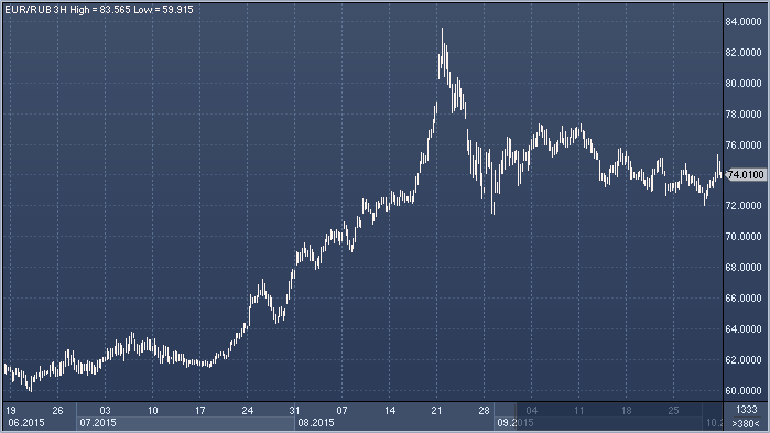 Как мы помним, в сентябре (прим. ProFinance.ru: впервые в этом году) Банк России оставил ключевую ставку без изменений, и, по мнению экспертов Raiffeisenbank, HSBC и Alfa Bank, текущая ситуация не позволит ему возобновить цикл ее снижения до следующего года. Сегодня или завтра будут опубликованы данные по динамике потребительских цен в России, которые, как ожидается, окажутся серьезно выше текущего уровня ключевой ставки ЦБ РФ в 11% и покажут рост инфляции в сентябре в 15.8% в годовом выражении. Теперь российский регулятор оказался между молотом и наковальней: высокая стоимость заимствований негативно сказывается на инвестициях и финансах домохозяйств, а подешевевший в третьем квартале на 15% рубль порождает рост инфляционных ожиданий и заставляет ритейлеров перекладывать растущие расходы на покупателей. Как отмечают в Raiffeisenbank, в этом сентябре снижение цен на овощи и фрукты оказалось существенно меньше, чем в аналогичный период прошлых лет, что является прямым следствием резкой девальвации рубля в июле-августе. В субботу это подтвердила и первый зампред Банка Россия Ксения Юдаева, отметившая, что инфляционные ожидания остаются на высоком уровне и являются проблемой. Отметим, что в нынешнем году рубль стал абсолютным аутсайдером среди 24 валют развивающихся стран, подешевев против доллара на 40%. В настоящий момент рынок производных инструментов учитывает в котировках рост ключевой ставки ЦБ РФ на 0.28% в ближайшие три месяца. Источник: ProFinance.Ru - Новости рынка Forex