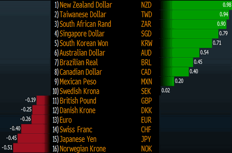 ProFinance.ru: В приведенной ниже таблице отражено изменение курса различных валют (в %) против доллара США в понедельник Источник: ProFinance.Ru - Новости рынка Forex