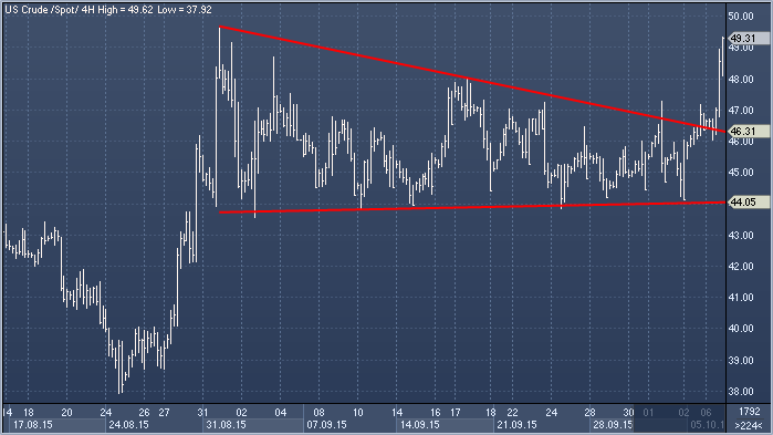 Во второй половине торговой сессии вторника котировки Brent и WTI резко взлетели, покинув, наконец, многонедельный консолидационный треугольник. Как отметил на конференции в Лондоне во вторник глава Royal Dutch Shell Бен Ван Бёрден, появляются первые признаки того, что черное золото нащупало дно, однако сама компания, все же, продолжает готовиться к долгому периоду низких цен. «Спрос растет, и предложение должно будет ему соответствовать», - сказал господин Ван Бёрден. – «Будут разрабатываться месторождения с высокой себестоимостью добычи, поэтому ценам на нефть придется вырасти, чтобы окупить этот процесс. Это – наш прогноз, однако мы не может действовать, ставя на него все». «Мы слышим множество голосов о том, что дно достигнуто», - говорит Майк Уиттнер, глава исследований рынка нефти Societe Generale. – «Похоже, что общий настрой инвесторов сменился на позитивный, однако достижение равновесия спроса и предложения, а также ребалансировка цен займет много времени». «В следующем году мы увидим падение объемов добычи за пределами ОПЕК, что приведет к росту нефтяных котировок », - считает Сет Клейнман из Citigroup. «Участники рынка начинают замечать падение объемов добычи», - соглашается Джок Килдуфф из Again Capital. – «Вчера глава Shell и генсек ОПЕК выразили умеренный оптимизм относительно вероятного восстановления цен на нефть. Период низких цен уже привел к падению объемов добычи в США на 500 000 баррелей в сутки». Источник: ProFinance.Ru - Новости рынка Forex
