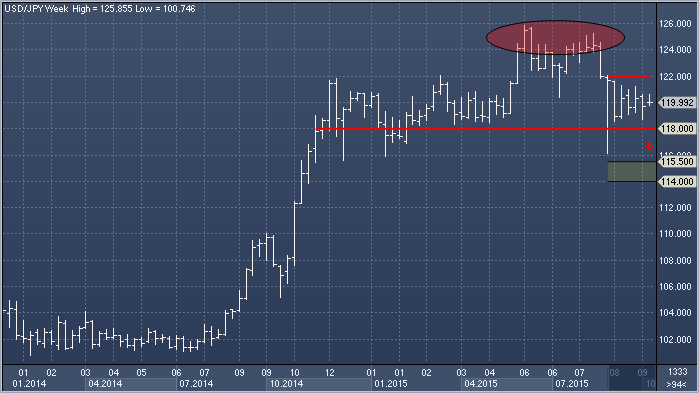 Доллар/иена: летом пара уперлась в многолетнее сопротивление Y126, затем резко скорректировалась и сформировала поддержку выше фигуры Y118.00. На дневном и недельном графиках отчетливо видна двойная вершина, которая создает предпосылки для дальнейшего снижения к Y115.50-Y114.00. В ближайшей перспективе сопротивление Y122 должно ограничить попытки роста. Источник: ProFinance.Ru - Новости рынка Forex