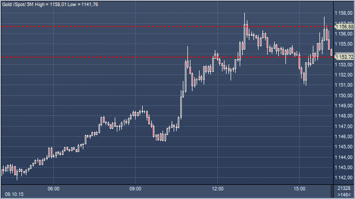 "Мы по-прежнему видим довольно сильный спрос на золото. Рыночные показатели способствуют росту цен, и чем дольше ФРС будет откладывать повышение ставок, тем лучше для золота", - сказал директор по стратегии на сырьевом рынке ING Bank Хамза Хан, добавив, что на будущей неделе золото может подорожать до $1200, таким образом вернувшись к уровню, невиданному с конца июня. Ослабления доллара США выступает в качестве дополнительного фактора роста цен на сырье, включая золото. "Доллар немного снижался в начале сессии после того, как в четверг были опубликованы протоколы ФРС", - говорит Дэвид Говетт из Marex Spectron. "Некоторые инвесторы считают, что пока существует неопределённость в отношении мировой экономики и Китая, ФРС будет воздерживаться от повышения ставок", - добавляет он.