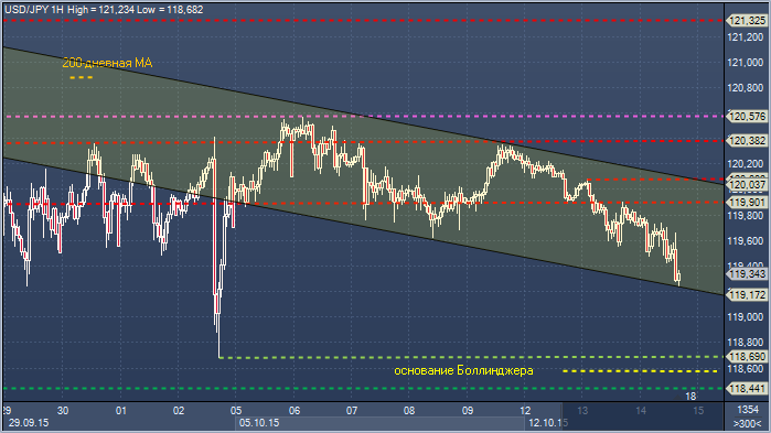 Сопротивление 1: Y119.90 - часовое сопротивление 13 октября