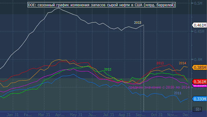 Если фактический результат, который Департамент энергетики США опубликует завтра в 18:00 мск., совпадет с прогнозами, то получится, что запасы увеличиваются 3 недели подряд. На данный момент общий объем запасов составляет 461 млн. баррелей, что более чем на 100 млн. баррелей выше среднего значения за пятилетний период, рассчитанного для текущей даты. Этот факт в совокупности с ожиданиями снижения темпов увеличения спроса в 2016 году, сохраняет рынок нефти во власти медвежьих настроений. По крайней мере, пока хеджеры собираются использовать любые попытки приближения к недавним максимумам для возобновления продаж фьючерсов. Источник: ProFinance.Ru - Новости рынка Forex