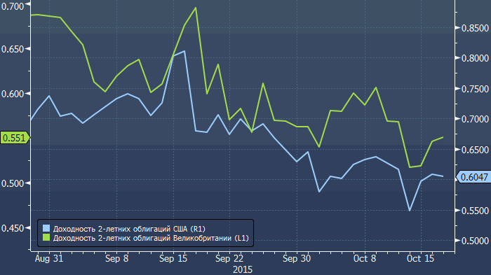 Давление продаж на фунт, а также рост британских процентных ставок в течение последних 2 месяцев являлись причиной изменения рыночного ценообразования. Теперь рынок ожидает первое повышение ставок Банка Англии в начале 2017 года, что гораздо более поздний срок в сравнении с нашими собственными ожиданиями — второе полугодие 2016 года. Изменений ожиданий в отношении британских процентных ставок последовало за миролюбивыми комментариями ФРС и ухудшением экономических данных в США.