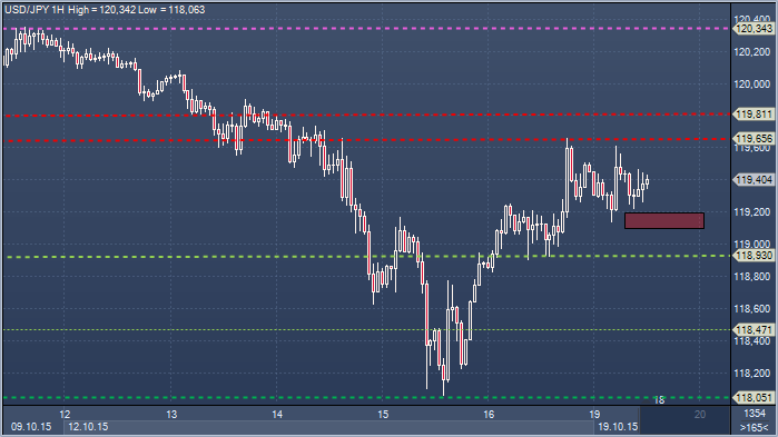 Сопротивление 1: Y119.65 - минимум 8 октября, максимум 16 октября