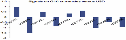 Валютные стратеги Societe Generale обновили еженедельные данные по валютному позиционированию своего фонда FX Quant Fund, управляемого с помощью автоматической торговой системы, базирующейся на основе оценки дифференциала доходности и моментума.