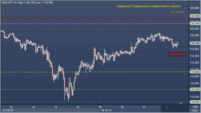 Поддержка 1: Y119.40/50 - часовая поддержка