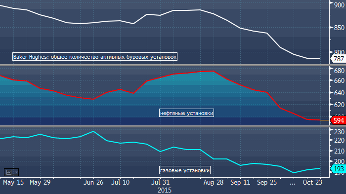 Цены на нефть не показали заметной реакции на опубликованные еженедельные данные нефтегазовой сервисной компании Baker Hughes по количеству активных буровых установок. За прошедшую неделю (до 23 октября):