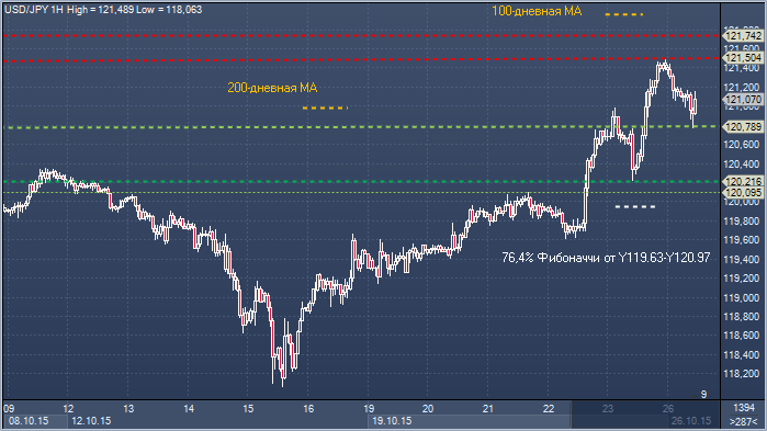 Сопротивление 1: Y121.50 - часовое сопротивление 26 октября
