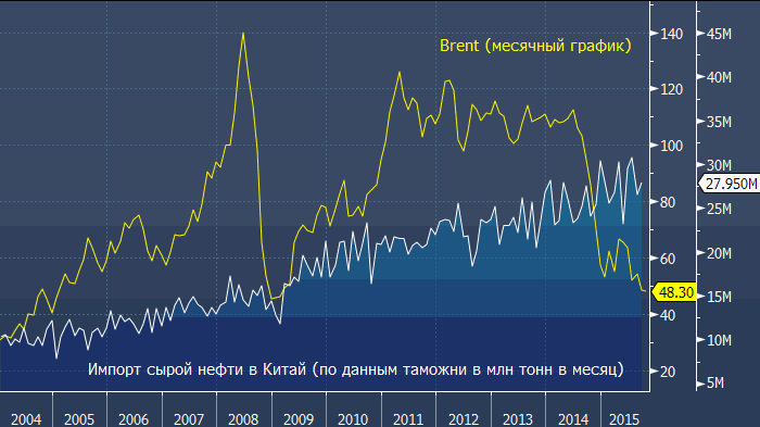 Эта динамика полностью согласуется с полученной ранее в этом месяце информацией о том, что дневной тариф крупнотоннажных танкеров впервые с 2008 года превысил 100 тыс. долларов, даже несмотря на то, что Саудовская Аравия активно сбрасывает цены и предлагает свою нефть на 3.2 доллара дешевле эталонного сорта (это самая значительная разница с 2012 года). Исходя из этого можно сделать вывод, что между США и их якобы союзной Саудовской Аравией во всю идет ценовая война, где каждая из сторон стремится отхватить как можно более жирный кусок пирога и успеть закрепиться на рынке, пока Китай запасается нефтью по низким ценам.