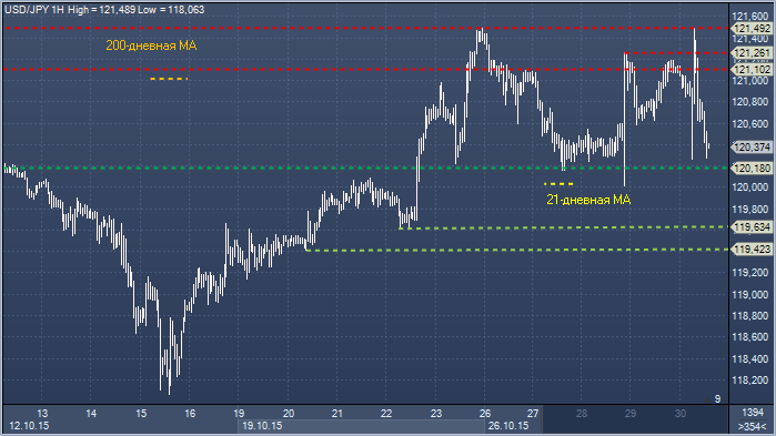 Сопротивление 2: Y121.45/49 - внутридневной максимум, максимум 26 октября