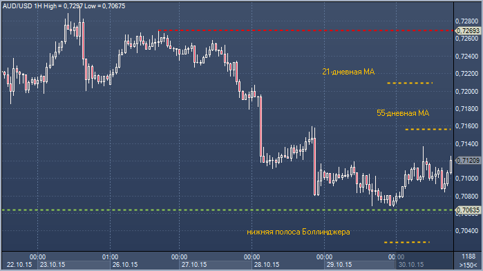 Комментарий: исходя из закрытия во вторник 21-дневного скользящего среднего значения, сохраняется давлением на $0.7063, минимум 6 октября, где также проходит нижняя граница канала. Медведи попытаются закрыться ниже $0.7063, чтобы подтвердить фокус на повторное испытание минимумов 2015. Быкам теперь нужно закрытие выше $0.7119, чтобы облегчить понижательное давление, тогда как закрытие выше 21-дневного скользящего среднего значения необходимо, чтобы претендовать на первоначальную цель - 100-дневное скользящее среднее значение ($0.7307). Источник: ProFinance.Ru - Новости рынка Forex