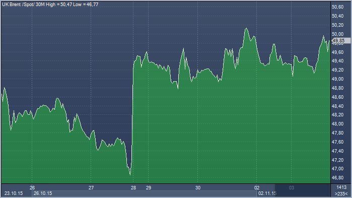 Цены на нефть растут во вторник на фоне общего улучшения настроений к риску, а также вследствие покрытия коротких позиций. К 17.50 мск фьючерсы на Brent подорожали на $1.62 до $49.64 за баррель, а фьючерсы на WTI - на $2.11 до $47.04. Следующим препятствием для WTI будут максимумы 16-19 октября на $47.50/$47.49 и 100-дневное скользящее среднее значение на $48.05, максимум 13 октября на $48.43 и психологический уровень в $50. Выше скрываются 200-дневное скользящее среднее значение на $50.62 и пик 9 октября $50.92.