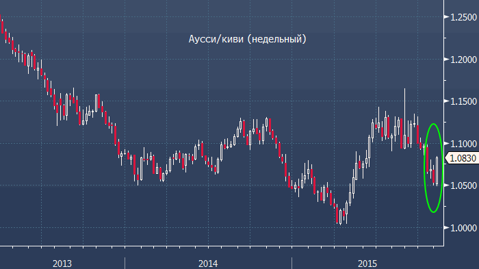 Аусси/киви продолжает восстанавливаться, и в случае закрытия недели около текущих уровней на графике сформируется бычье поглощение. Прорыв выше NZ$1.0700-40 открывает дорогу для теста бывшей мощной поддержки NZ$1.09 и, возможно, области коррекции 61.8% с сентябрьских максимумов около NZ$1.1020. Источник: ProFinance.Ru - Новости рынка Forex