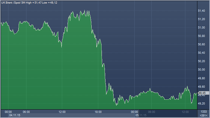 Цены на нефть пытаются скорректироваться после значительного спада в среду, вызванного сообщением об увеличении запасов нефти в США и завуалированным обещанием чиновников ФРС повысить ставку в декабре. К 13.40 мск фьючерсы на Brent подорожали на $0.20 до $48.81 за баррель, а фьючерсы на WTI - на $0.17 до $46.35. В среду Brent подешевела на 3,9 %, а WTI - на 3,3 %. Запасы нефти в США на прошлой неделе выросли на 2,85 миллиона баррелей, по данным Управления энергетической информации, несмотря на падение импорта до минимума с 1991 года. Коммерческие запасы нефти в США составили 482,8 млн баррелей, они остаются на самых высоких уровнях для этого времени года по крайней мере за последние 80 лет. "Американские данные негативно повлияли на рынок, а вероятность улучшения баланса спроса и предложения на этом этапе мала, так как запасы растут, а добыча не снижается", - сказал экономист из Сиднея Рик Спунер.