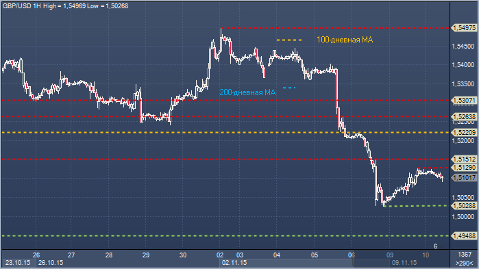 Сопротивление 2: $1.5151 - часовое сопротивление 6 ноября