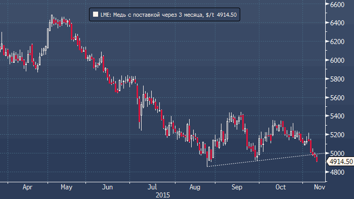 Импорт меди в Китай, вероятно, возобновит сокращение на фоне того, как являющаяся ориентиром шангхайская премия за последние 2 месяца упала на 40%. Премия Янгшань, индикатор спроса и предложения на таможенные склады, достигла в цене минимальных значений с июля. Хотя в сентябре импорт меди вырос до 20-месячного максимума. Поставки из зарубежа сократились в октябре на 6.9% по сравнению с аналогичным периодом годом ранее (в долларовом выражении). Импорт, отражая снижение китайского потребления, упал на 18.8% (данные таможни, опубликованные в воскресенье).