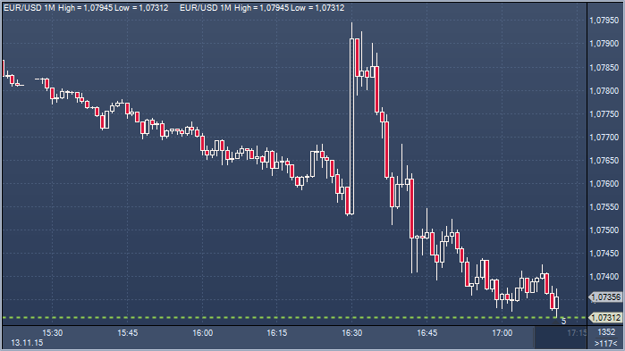 Итак, данные вышли плохими, в обеих отчетах. Объем розничных продаж в США в октябре в месячном выражении вырос на 0,1%, хотя аналитики ожидали рост на 0,3%. Сентябрьский показатель был пересмотрен с роста на 0,1% до нулевого показателя. Объем розничных продаж, исключая автомобили и комплектующие, в октябре увеличился по сравнению с пересмотренным показателем сентября на 0,2%. Аналитики ожидали роста на 0,4%. Соответствующий сентябрьский показатель был пересмотрен в сторону уменьшения: со снижения на 0,3% до падения на 0,4%. Промышленная инфляция также разочаровала, оказавшись заметно ниже прогнозов.