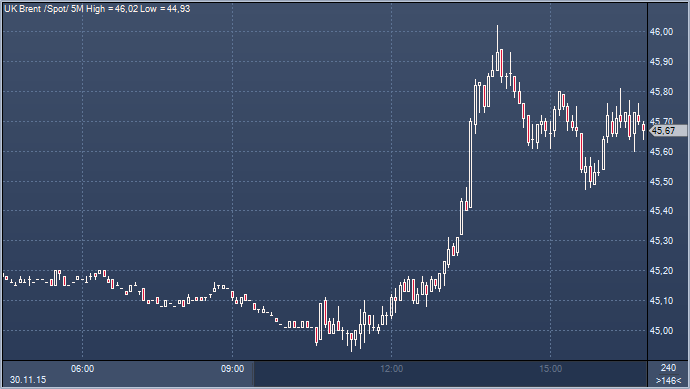 К 16.30 мск фьючерсы на Brent подорожали на $0.52 до $45.38 за баррель, а фьючерсы на WTI - на $0.38 до $42.09. За ноябрь цены могут снизиться на 7-9 % из-за избытка нефти на мировом рынке и роста курса доллара, вызванного ожиданиями повышения процентных ставок ФРС в декабре. Выходящий в пятницу отчет о занятости в США, скорее всего, уже не повлияет на решение ФРС повысить процентную ставку 16 декабря, так как регулятор понимает, что затягивать с этим уже вредно для экономики. "Мы отмечаем активное позиционирование накануне совещания ОПЕК, которое пройдет в конце недели. Оно вызывает большой интерес", - сказал аналитик Global Risk Management Майкл Поулсен. ОПЕК и Россия могут предпринять "некие согласованные действия по сокращению добычи", считает директор по инвестициям Ayers Alliance в Сиднее Джонатан Бэррет. "Избыток сохраняется, но мне кажется, что он может довольно быстро исчезнуть при изменении процентных ставок в США, которое означало бы повышение спроса", - сказал Бэррет. Аналитики ОПЕК прогнозируют увеличение спроса на нефть, добываемую странами картеля, в будущем году за счет снижения добычи в США и повышения общемирового потребления на 1,25 миллиона баррелей в сутки. Источник: ProFinance.Ru - Новости рынка Forex