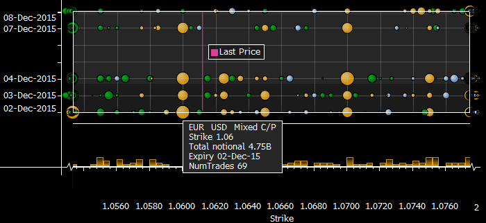 | Как пользоваться графической информацией, представленной ниже? На графиках в виде кругов, размер которых зависит от объема, представлены страйки опционов (по оси Х), срок истечения которых наступает в указанную дату (ось Y). Голубой цвет — Call. Зеленый цвет — Put. Желтый цвет — Mixed C/P. Источник данных: Депозитарная Трастовая и Клиринговая Корпорация (DTCC). Просьба свои замечания и пожелания относительно формата и содержания предоставляемой на сайте аналитической информации направлять по адресу: analytics@forexpf.ru |