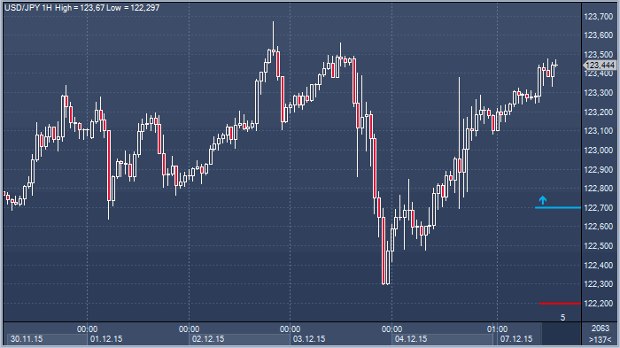 Доллар/иена. После пятничной публикации сильного отчета по рынку труда в США за ноябрь картина не изменилась. Практически не существует оснований думать, что ФРС не повысит ставки на следующей неделе. Мы рекомендует открывать длинные позиции в паре доллар/иена на подходе к 122.70, разместив стоп-приказ на ограничение убытка на 122.20.