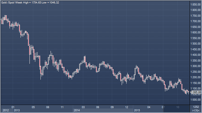 Аналитики ScotiaMocatta отмечают, что ситуация на рынке золота остается непростой, и, хотя темпы падения носят умеренный характер, медвежий тренд последних четырех лет все еще в силе и сохраняет потенциал для развития. В банке не думают, что от металла стоит ожидать обвала, но тестирование $1000 за тройскую унцию весьма вероятно, как и прорыв ниже.